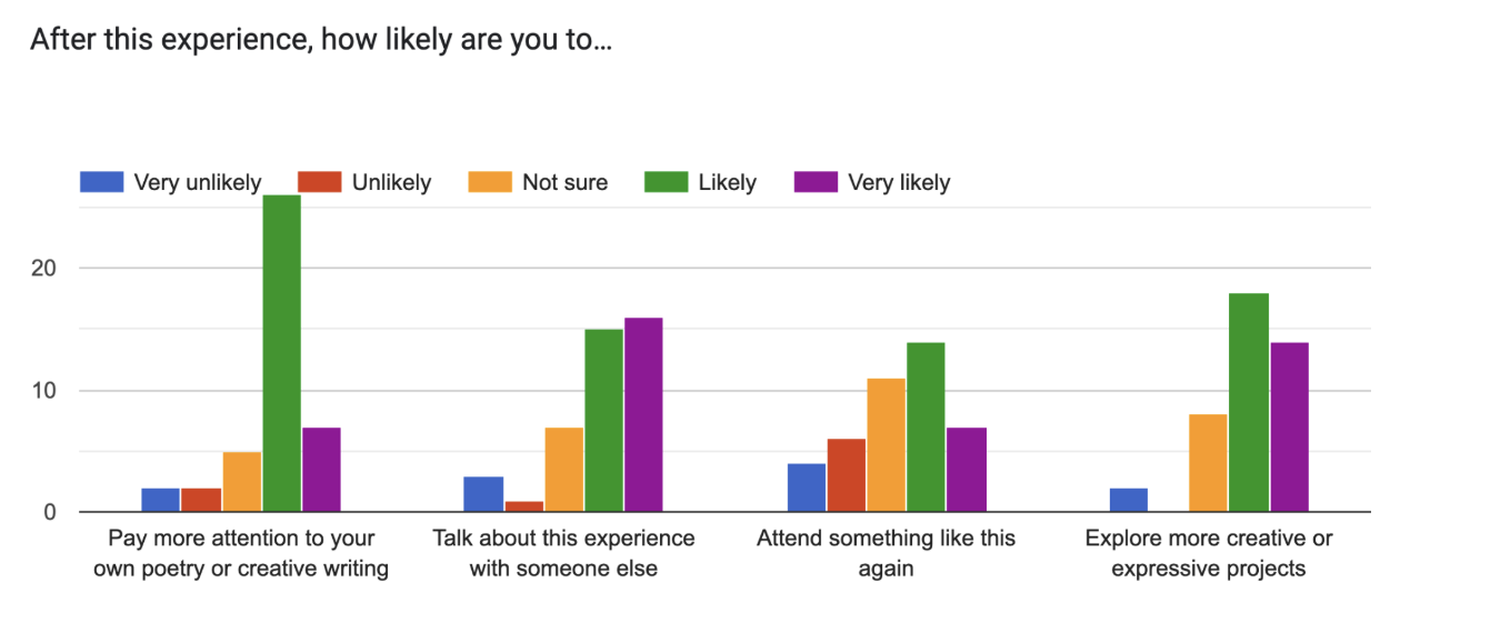 79% of students reported that the experience is likely to increase their attention to their own poetry and creative writing