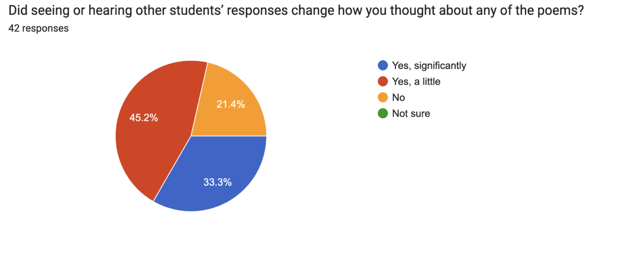79% of students said that hearing other students’ responses changed how they thought about the poems