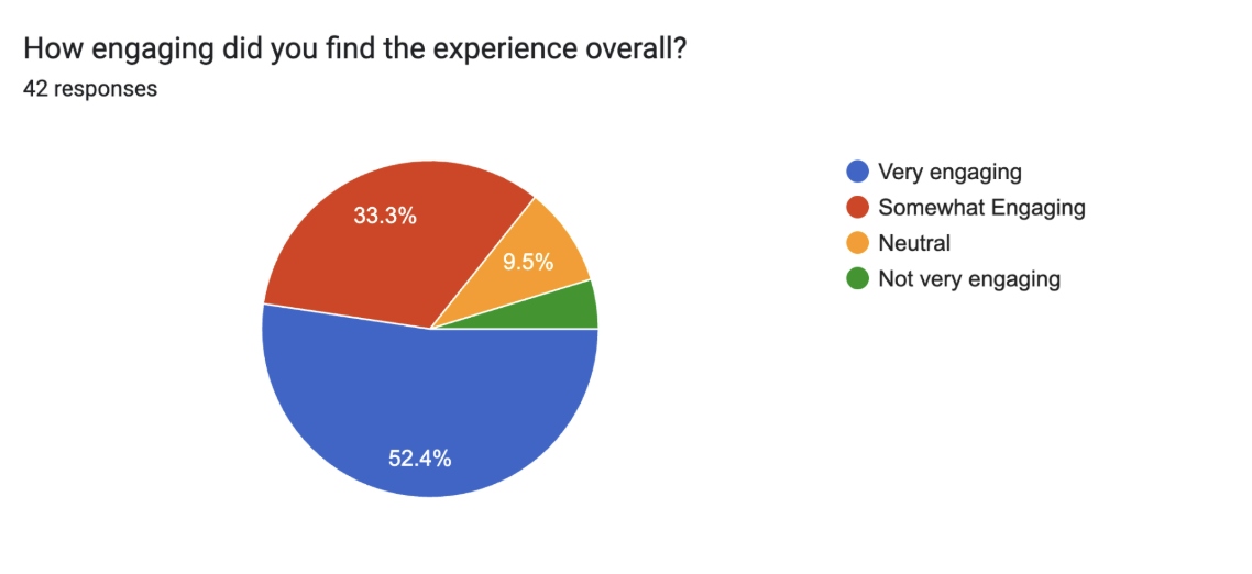 86% of students found the experience “Very engaging" or “Somewhat engaging”